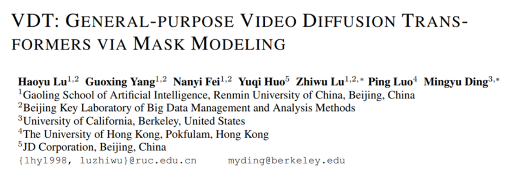 l Project Address:VDT: General-purpose Video Diffusion Transformers via Mask Modeling