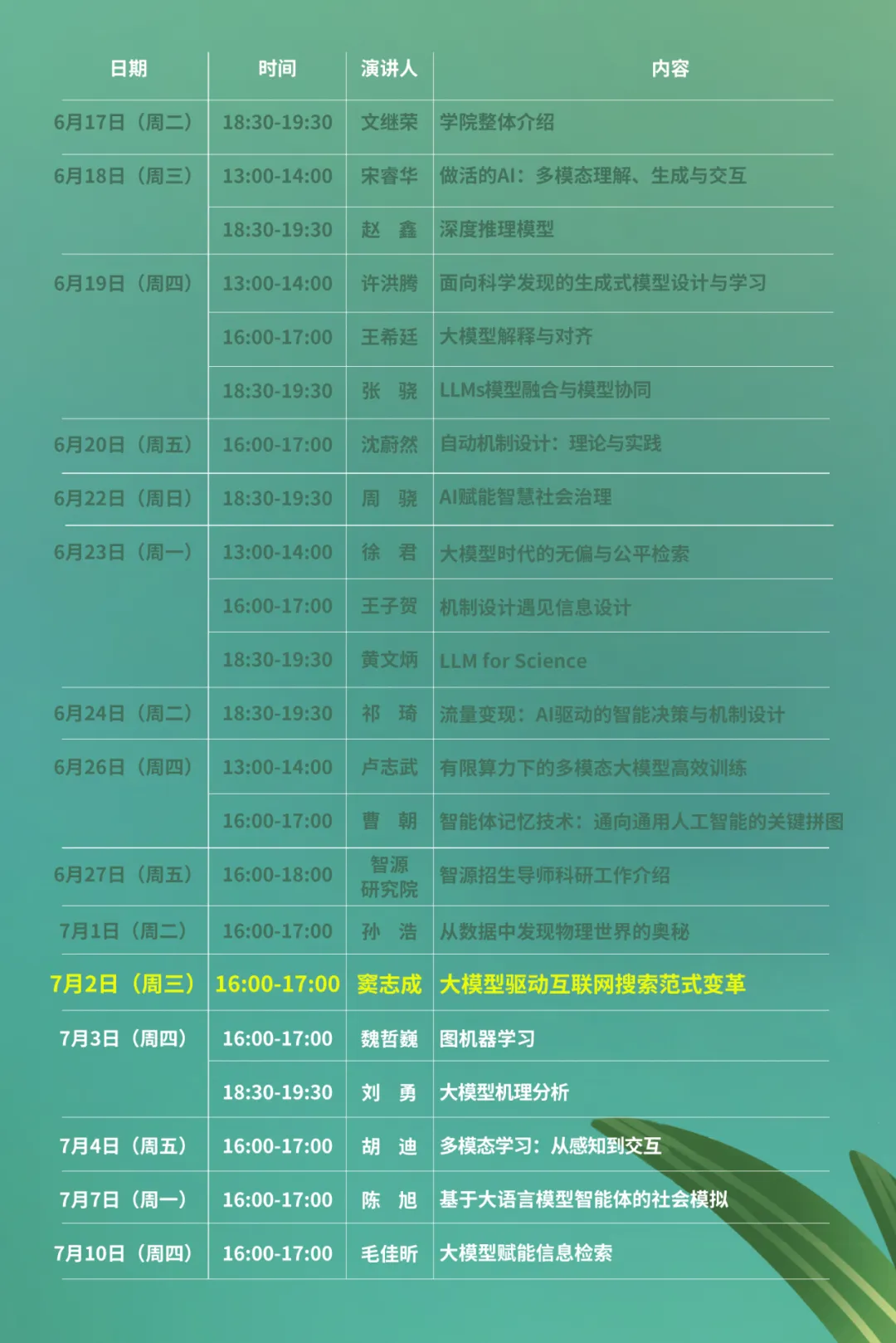 “AI之夏”研招系列学术讲座第17讲,由人大7M体育即时比分 窦志成教授为大家宣讲。