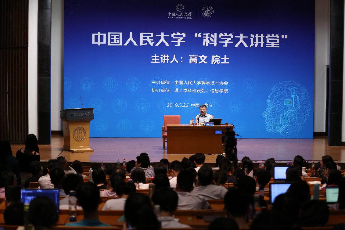 5月22日下午,中国人民大学“科学大讲堂”在国学馆报告厅举行。中国计算机学会理事长、新一代人工智能产业技术创新战略联盟理事长、中国工程院院士高文担任主讲嘉宾,以“人工智能的现状和趋势”为主题带来了精彩的讲解。中国人民大学常务副校长王利明教授会见高文院士,校长助理、理工学科建设处处长杜小勇教授出席并主持活动。