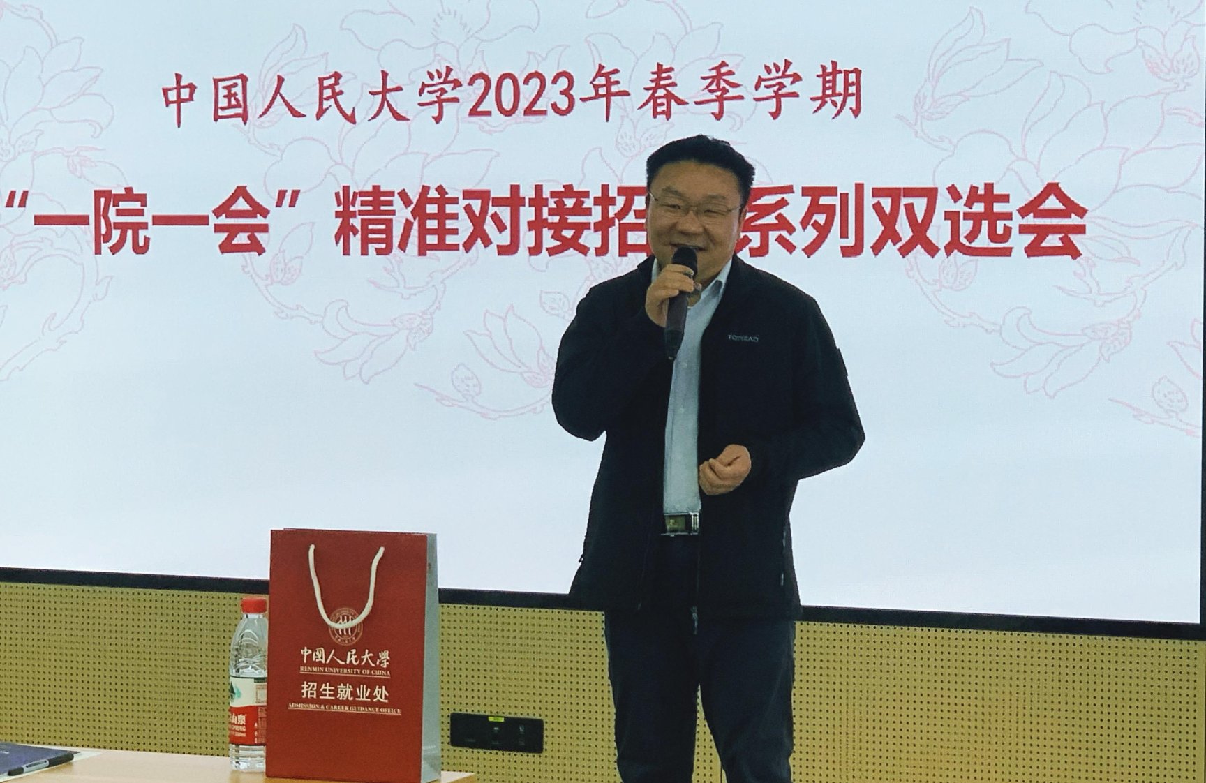 为深入贯彻落实党的二十大精神,服务广大用人单位和毕业生,搭建好“双向选择”的供需平台,促进毕业生实现更加充分更高质量就业,3月9日下午,中国人民大学2023年春季学期“一院一会”精准对接招聘系列双选会在立德楼18层1826多功能报告厅举行。