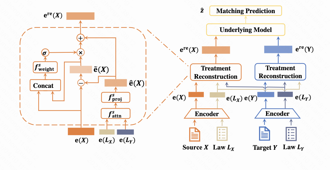 论文概述:司法案件匹配在智能法律系统中发挥了重要作用。语义文本匹配模型已被应用于长文本文件的匹配任务中。这些通用的匹配模型仅仅基于法律案件进行预测,而忽略了法律条文在法律案件匹配中的重要作用。在现实世界中,因为法律案件的内容和判决是在法律条文的基础上形成的,匹配结果(如相关性标签)会受到法律条文的极大影响。从因果关系的角度来看,匹配结果会受到法律案例中引用的法律条文的中介作用,以及法律案例中的关键情节(如详细的事实描述)的直接影响。 根据这一观察,本文提出了一个名为Law-Match的模型无关的因果学习框架,在该框架下,法律案件的匹配模型是通过依据相应的法律条文来学习的。给定一对法律案件和相关的法律条文,Law-Match将法律条文的视为工具变量(IVs),将法律案件视为 treatments。利用IV回归,处理方法可以分解为与法律相关和与法律无关的部分,分别反映出中介和直接效应。然后,这两部分以不同的权重结合起来,共同支持最终的匹配预测。我们表明,该框架与模型无关,一些法律案件的匹配模型可以作为基础模型应用。综合实验表明,Law-Match在三个公共数据集上的表现超过了最先进的基线。