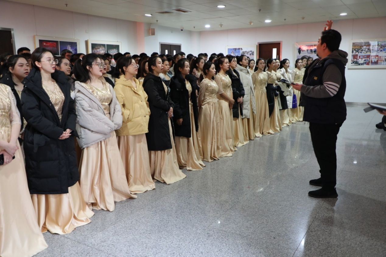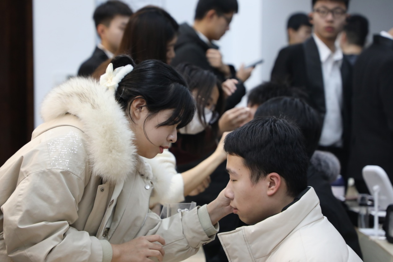 在寒冷的冬日里,金色的长裙摇曳,浮光璀璨;深色的西装笔挺,气宇轩昂。同学们整装待发,经过几个月的训练与磨合,他们已经成竹在胸,静待在舞台的华灯之下绽放夺目的光彩。