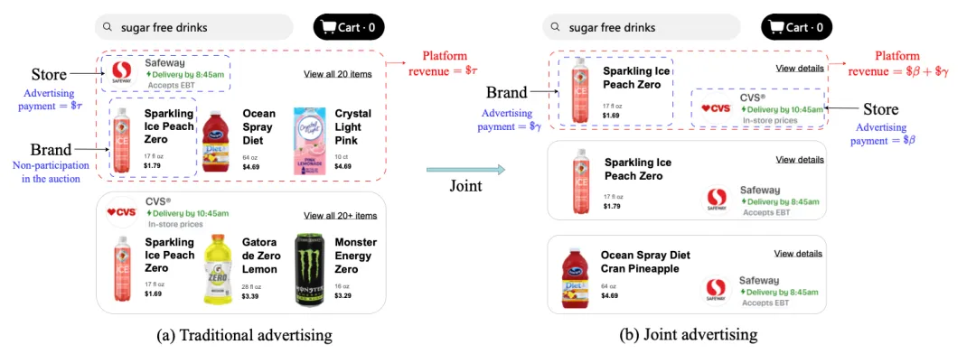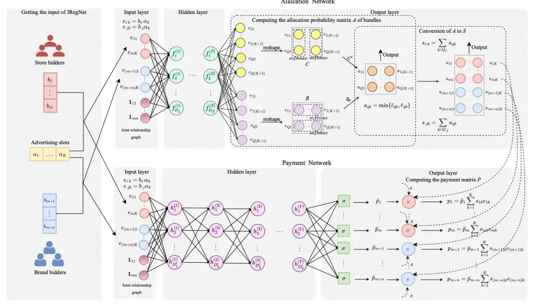 论文概述:在线广告一直都是互联网平台的主要收入来源。传统的电商平台都是对品牌方或者零售商单独提供营销服务。我们构建了一种全新的“联合拍卖”模式,由品牌方和零售商共同出价来获取流量。我们发现这一全新的模式可以大幅提升平台的流量变现效率。在该场景中,为了最大化平台收入,我们基于深度神经网络设计了JRegNet算法,实现了端到端的自动广告拍卖机制。该机制在最大化平台收益的同时也保证了近似激励兼容性和个体理性。大量线下实验与实际上线实验都验证了平台收益的大幅提升。目前整体模型已经在美团上线,显著提升了美团广告收益。