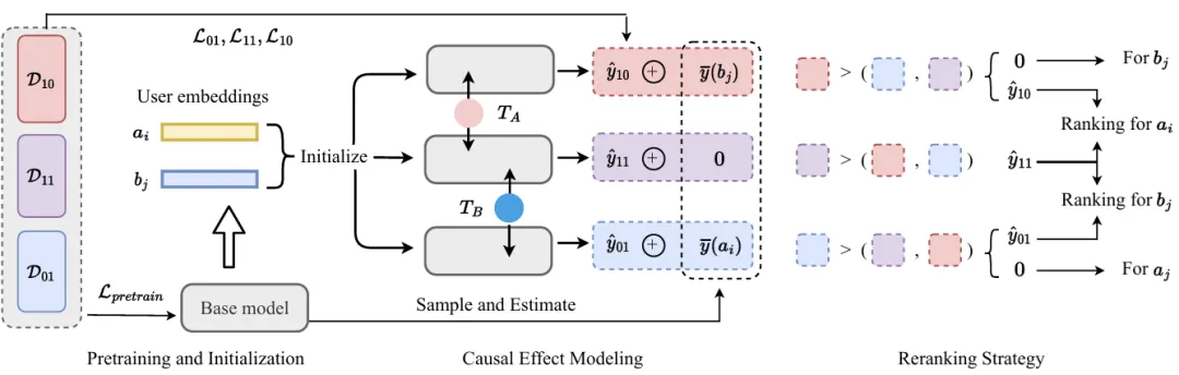 本文系统地重新审视了互惠推荐任务,引入了新的评测指标和基于因果推断的推荐算法。首先,我们提出了五个新的评测指标,从三个不同的角度评估互惠推荐系统的性能:总体覆盖率、双向稳定性和均衡排序。进而,我们从因果关系的角度对互惠推荐系统进行了重新构建,将推荐过程形式化为双向干预,通过利用潜在结果框架,我们开发了一个模型无关的因果互惠推荐方法,以更好的建模互惠推荐中的因果效应。此外,我们引入了一种重排策略,以最大化匹配覆盖结果。我们通过在招聘和约会场景中使用两个真实数据集进行了广泛的实验,验证了我们提出的度量标准和方法的有效性。