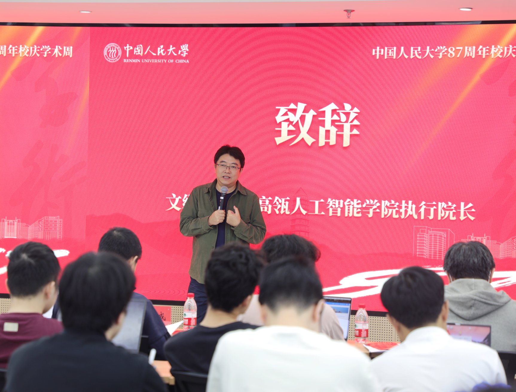 文继荣教授发表致辞。他指出,以大模型为代表的新一代人工智能技术掀起了全球人工智能发展的新浪潮,未来已来,新的超级工具即将出现,新的研究方式已在眼前。希望各位师生积极拥抱大模型、学习人工智能知识,将挑战转变为机遇。