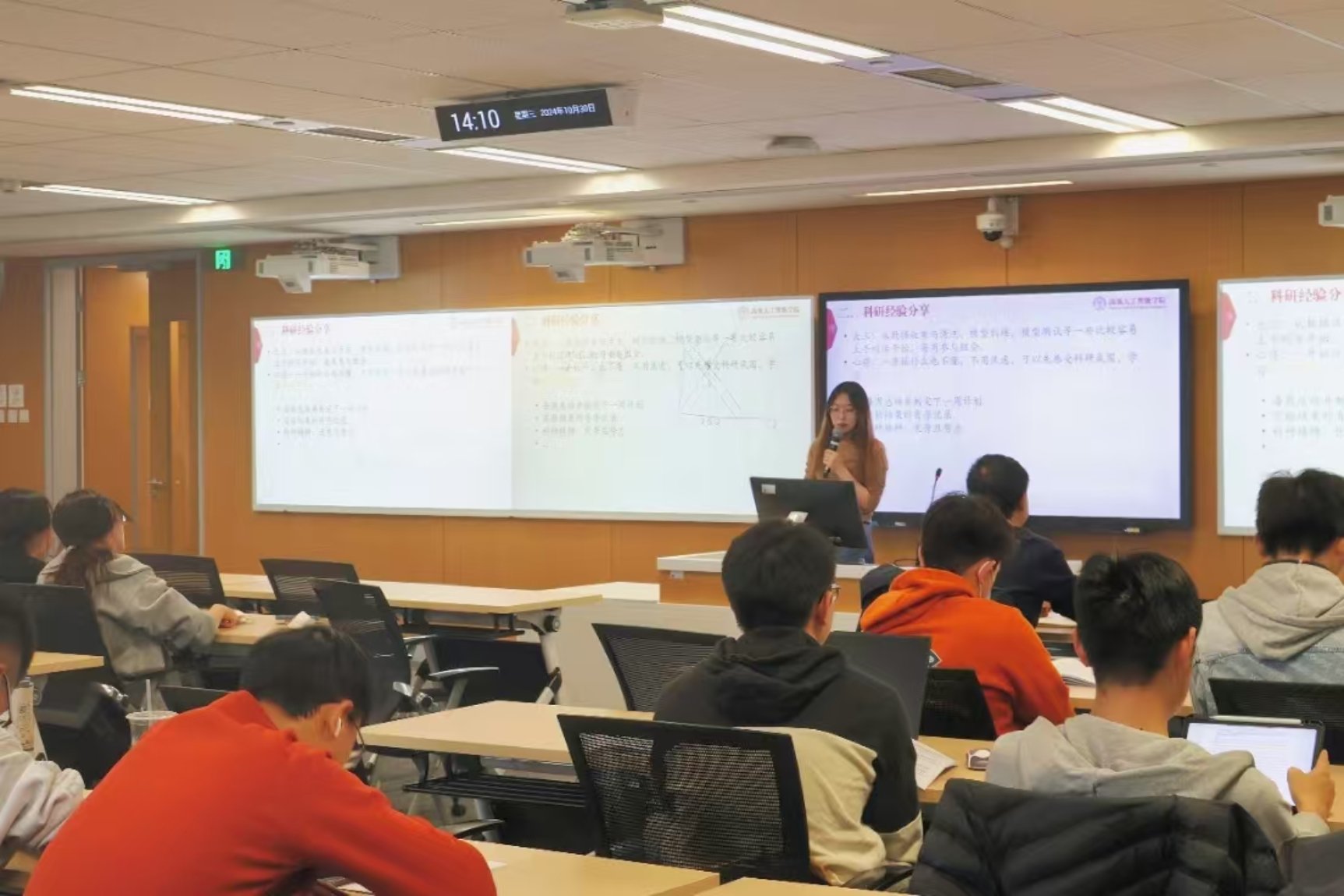 2024年10月30日下午,7M体育即时比分 在立德楼1001教室举行了2023级本科生科研领航行动启动会。会议由本科教务秘书杨倩老师主持,副院长窦志成教授出席并致辞,2021级本科生程翔、张冰姿、邓佳作为高年级代表分享科研经历,2023级全体本科生参会。