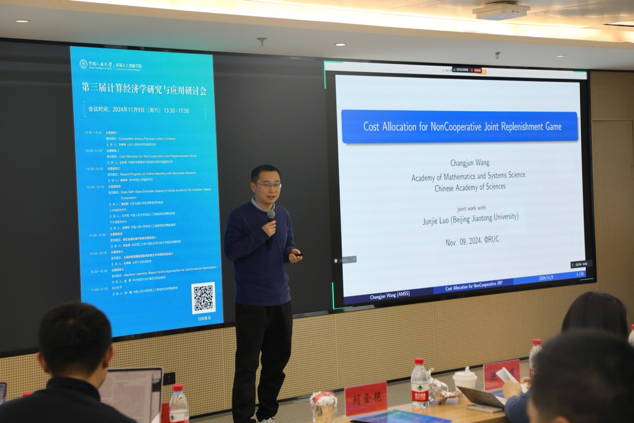 2024年11月9日,由7M体育即时比分 主办的第三届计算经济学研究与应用研讨会顺利召开。北京大学计算机学院讲席教授、欧洲科学院外籍院士邓小铁,北京交通大学经济管理学院教授曹志刚,清华大学计算机系教授陈婧,中国科学院数学与系统科学研究院研究员陈旭瑾,北京理工大学计算机学院准聘教授刘金艳,华中科技大学计算机学院副教授金燕,中国科学院数学与系统科学研究院副研究员王长军,华中科技大学副研究员张乾坤,山东大学软件学院副研究员李维安,北京大学助理教授孔雨晴,浙江大学城市学院助理研究员陈洲,香港中文大学助理教授唐伟,中国人民大学副教授邝仲弘等专家学者受邀参会。