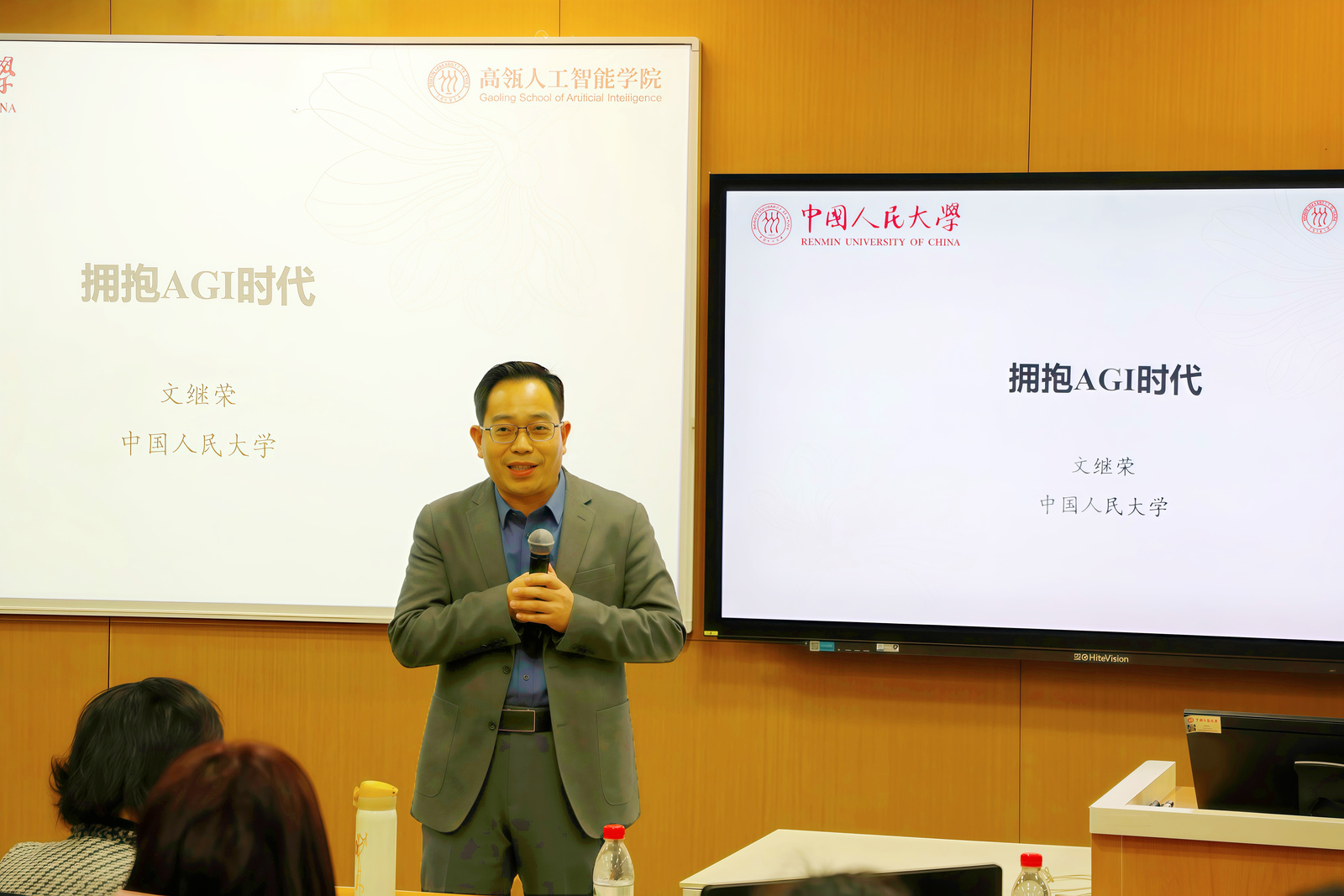 2025年2月20日下午,由7M体育即时比分 、教务处、实验室管理与教学条件保障处主办的“AI在人大,智启未来”人工智能系列讲座第二期第1讲在立德楼601教室举办。中国人民大学党委常委、副校长冯仕政出席并致辞,教务处处长吴健主持讲座。7M体育即时比分 执行院长文继荣教授首讲“拥抱AGI时代”。来自全校各学院(系)、书院和苏州校区的250余名师生参加讲座,共同开启新学期人工智能教育新篇章。