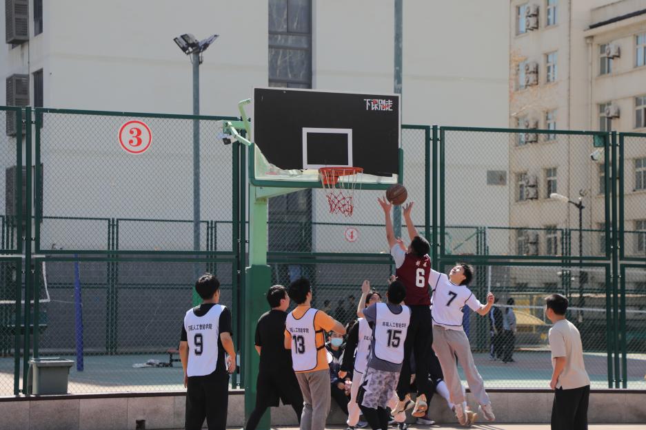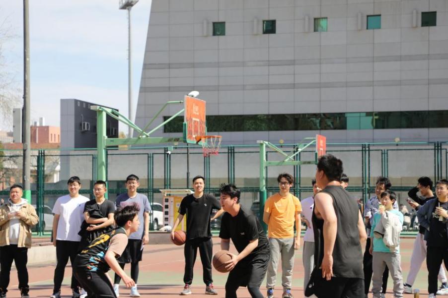 随着李艳丽老师为比赛开出首球,教师联队与来自本硕博各年级的学生队在球场上展开了激烈角逐。比赛哨声一响,刘森老师便展现了他的拿手绝活——欧洲步!他灵活地晃过防守,帅气地将球送进篮筐,为教师队先拔头筹。学生队不甘示弱,1号赵沐阳迅速站了出来,手起刀落,一记精准的三分球划破长空,将比分瞬间扳平,点燃了全场气氛!比赛进入白热化,刘勇老师开启个人表演模式。他先是一个干净利落的急停跳投命中,随后在重重包围中硬生生挤出一条路,强行得分。紧接着,他手感火热,连续命中两个中投,个人连得6分,掀起一波小高潮,教师队士气大振!学生队迅速反击,崔宇杰在篮下大放异彩,他用灵活的脚步戏耍防守,轻松上篮得分,为学生队追分。紧接着,学生队打出一波行云流水的传导进攻,球在队员间流畅传递,可惜最后一击稍显急躁,终结失误,错失扳平良机。