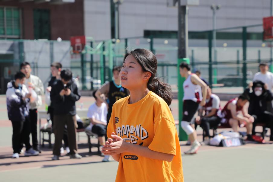 本场比赛还设置了特别环节——女生定点投篮!教师队派出宋睿华老师与李艳丽老师,而学生队则由2024级本科生曲柯宇和许一孟迎战。学生队率先开投,起初略显紧张,投篮频频打铁,但在观众的鼓励声中,她们迅速调整状态,连连命中,赢得满堂喝彩。轮到宋睿华老师上场,开局手感欠佳,但她沉着冷静,很快找回节奏,稳稳进球。压轴出场的李艳丽老师更是惊艳全场,最后时刻连续命中压哨球,悬念陡增!最终,教师队以6比5险胜学生队。