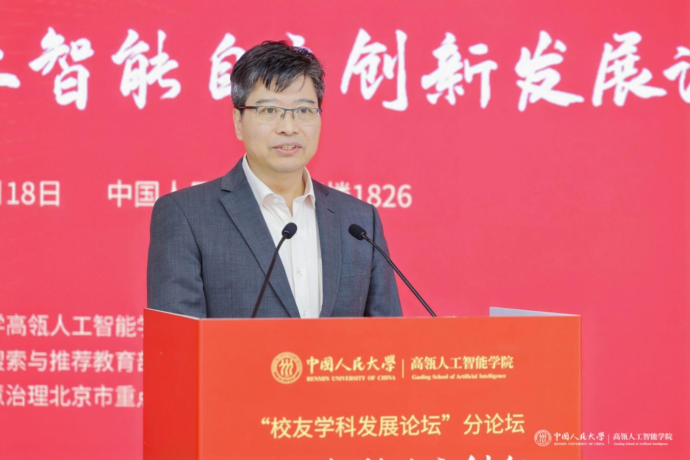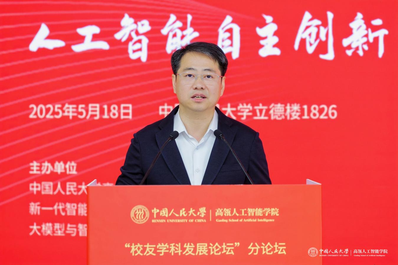 林尚立表示,当前,加快发展新一代人工智能成为事关我国能否抓住新一轮科技革命和产业变革机遇的战略问题。本次论坛的举办对中国人民大学汇聚众智、推动人工智能自主创新发展、服务国家与社会智慧治理具有重要意义。他表示,要创新人才培养模式、推动学科融合和产学研用一体化,培养驾驭人工智能的破浪者、勇做贯通数智人文的开拓者、当好产学研用融合的践行者。希望以此次论坛为坚实平台,不断推动教育链、人才链与创新链的深度融合,共同绘制中国人工智能发展的新坐标,为人工智能自主创新发展贡献智慧力量。