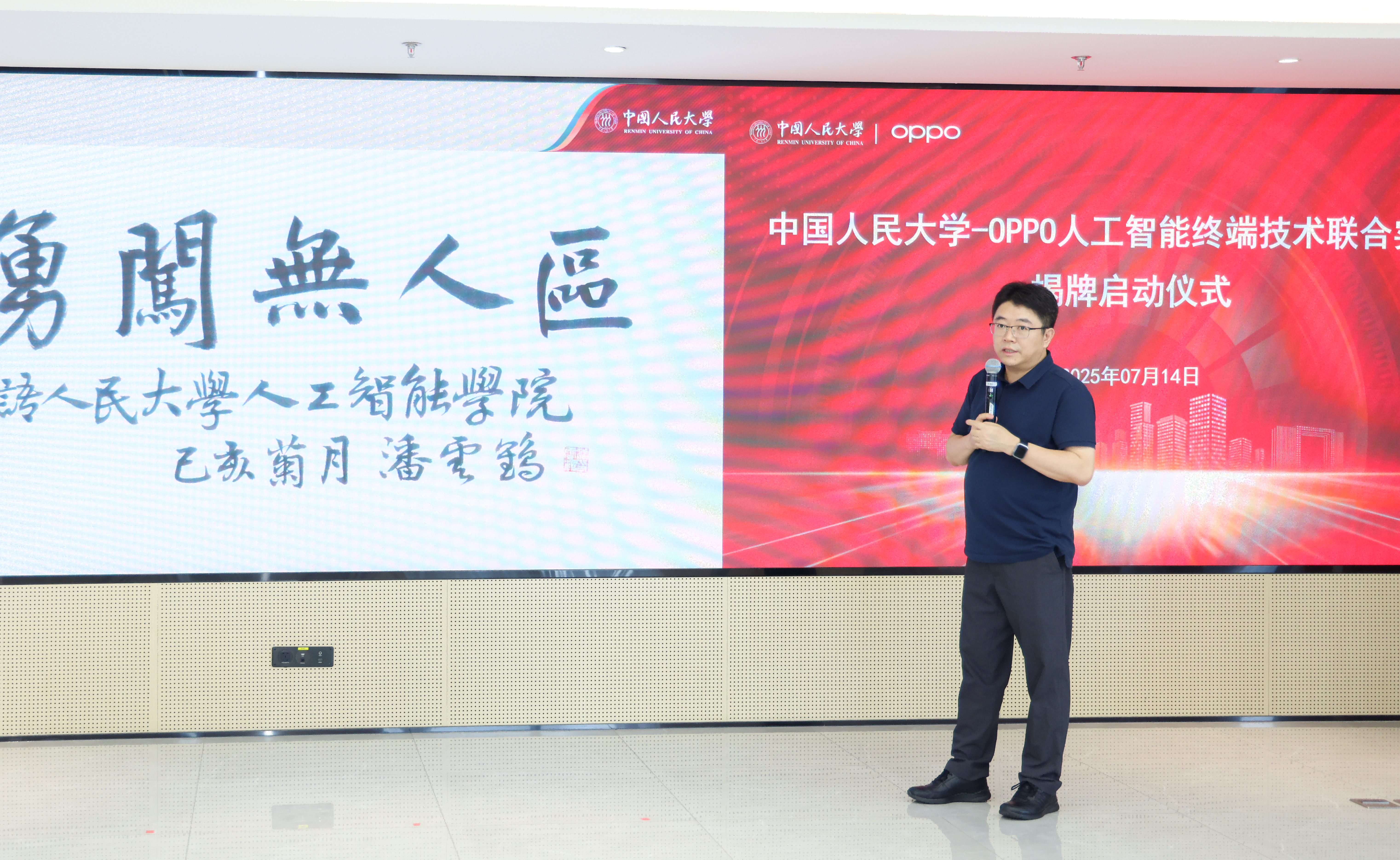 2025年7月14日,中国人民大学—OPPO人工智能终端技术联合实验室揭牌启动仪式在中国人民大学立德楼举行。