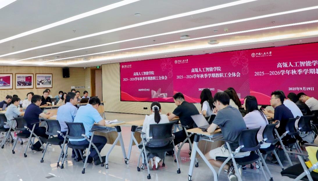 执行院长文继荣结合《国务院关于深入实施“人工智能+”行动的意见》精神,围绕学校新学期工作部署与学院发展实际,从学科建设、人才培养、有组织科研和创新发展四个维度,系统解读并部署本学期重点工作任务。他强调,全院教职员工要进一步凝聚共识,坚持以服务国家战略为导向,聚焦“人工智能+”与哲学社会科学深度融合,着力提升学生创新创业能力,共同推动人工智能一流学科建设迈上新台阶。