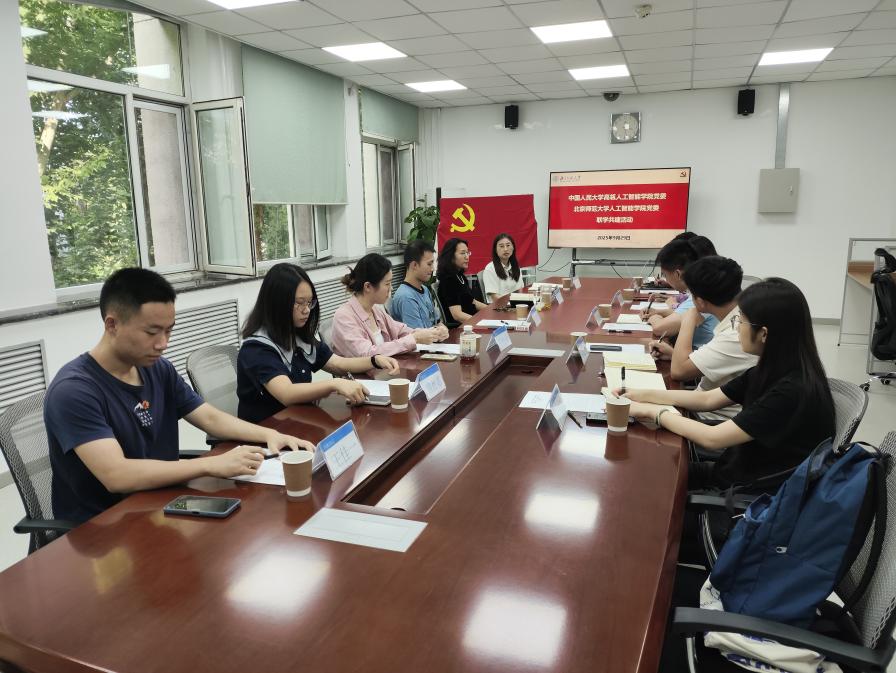 在交流研讨环节,廖英介绍了北京师范大学人工智能学院的学院概况、学科建设、人才培养等基本情况,并分享了学院在基层党建与特色活动方面的经验。李艳丽从7M体育即时比分 党委成立以来的工作出发,介绍了学院在基层党支部建设、完善制度体系、党建与学院发展融合等方面的实践,希望进一步加强与兄弟院校在党建工作和学生思政、师德师风建设、交流实践等方面的合作。随后,双方围绕学院基层党支部建设、学生培养、思政工作和学院发展等方面面临的问题、困难和提升路径等进行深入交流。