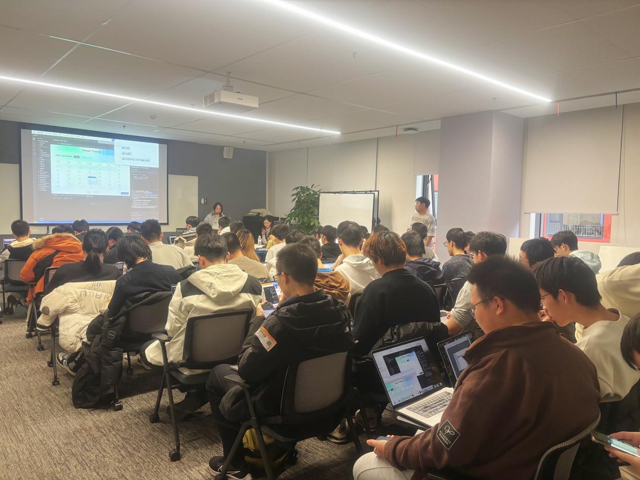 本次参访的 AI 编程实践环节亮点十足。快手为每位学子配备电脑,在技术专家指导下,同学们运用内部开发工具 CodeFlicker 从零搭建个性化数字日历。大家积极实操,借助内置 AI 助手高效排查代码问题,完成基础功能后,更融入动态表情、趣味语录、“今日运势” 等创意模块,实现技术应用与人文表达的巧妙融合。多数同学顺利完成作品并获赠周边,现场氛围热烈,充分彰显了人大青年在 AI 时代主动探索、勇于创新的精神风貌。