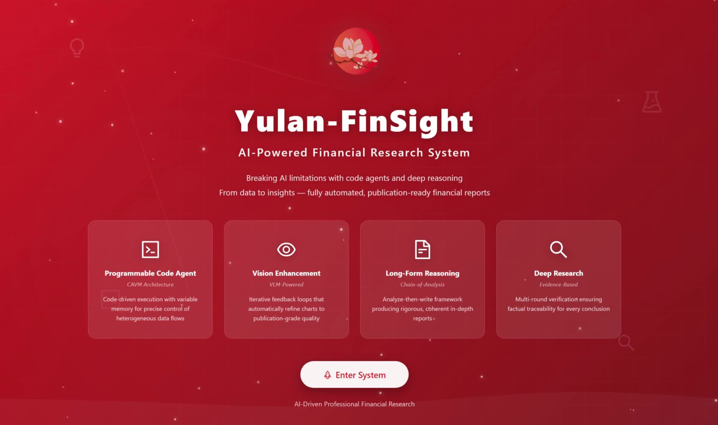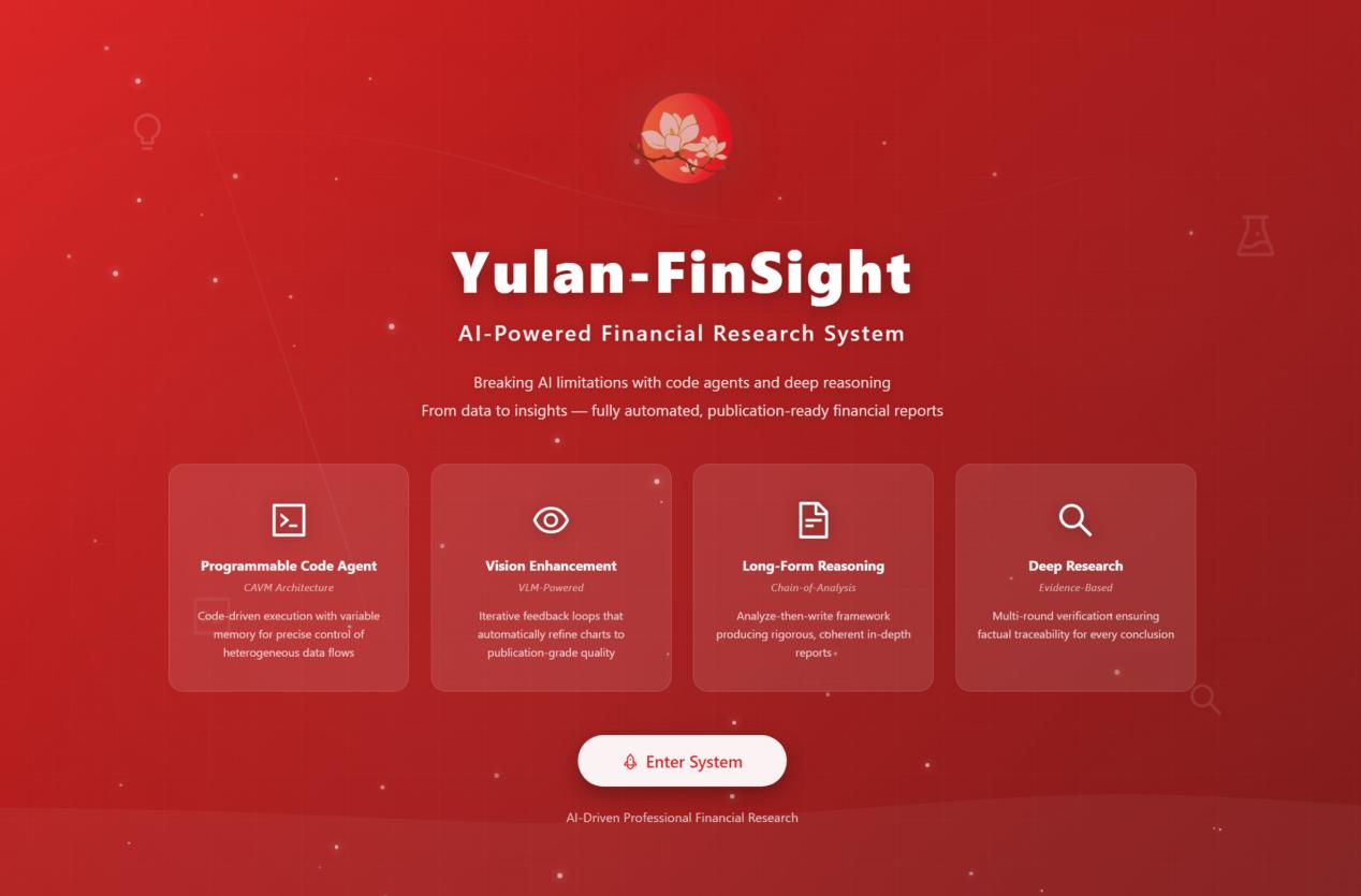 数以亿计的投资决策依赖于高质量、及时的研报。然而,撰写一份专业研报是极高强度的智力劳动,不仅需要处理海量实时异构数据,更依赖严谨的逻辑分析与专业的可视化呈现。目前的通用AI搜索系统(如 Perplexity, OpenAI Deep Research 等)在应对金融垂直领域时,常面临“领域知识缺失”、“图表生成简陋”以及“分析深度不足”三大挑战。为此,中国人民大学推出了 玉兰·融观 (Yulan-FinSight) —— 一款面向真实场景的专家级多模态金融研报生成系统。