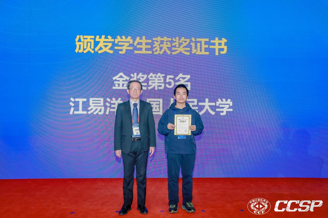 学院首次开展2025年数据计算及应用(智能科学)强基计划专业招生,强基班江易洋同学斩获2025 CCF CCSP(中国计算机学会大学生计算机系统与程序设计竞赛)全国总决赛金奖。