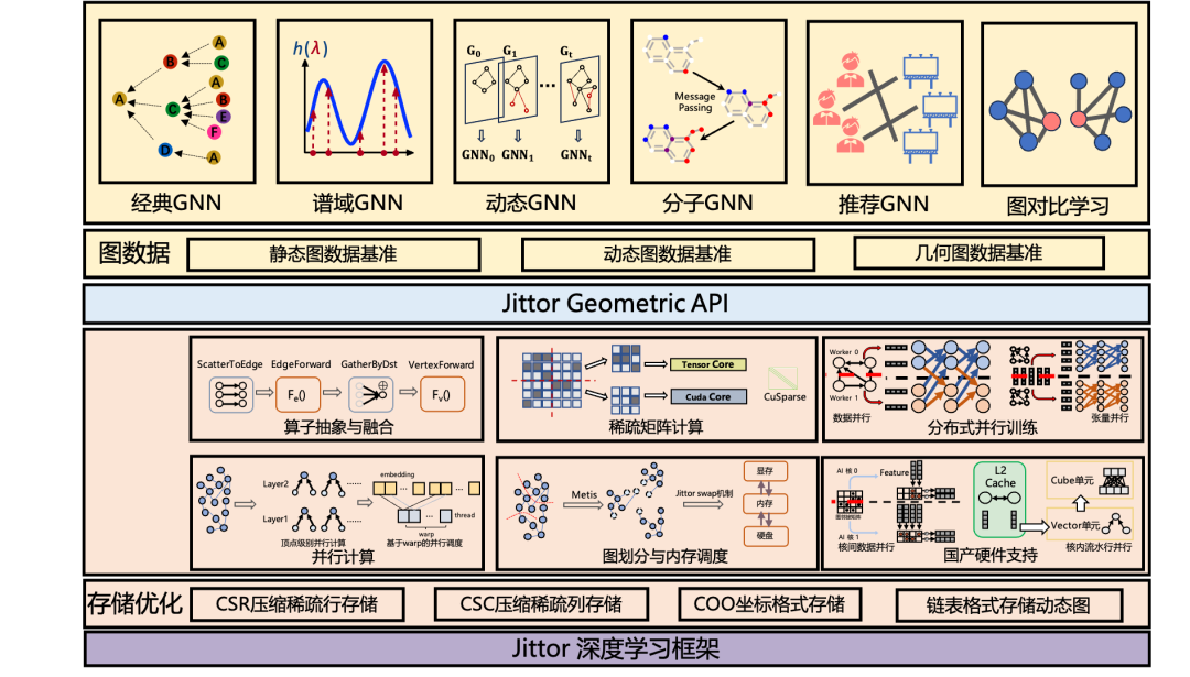 在 AI for Science 方向,联合发布图机器学习库Jittor-Geometric,依托国产深度学习框架Jittor,为图神经网络研究与应用提供高效、灵活的工程化支撑;同时在科学发现方法上推进“数据—符号—机理”融合,相关工作提出并行符号枚举(Parallel Symbolic Enumeration, PSE)并发表于Nature Computational Science,可从有限数据中更高效地蒸馏通用数学表达式,用于自动发现物理规律与可解释模型构建。