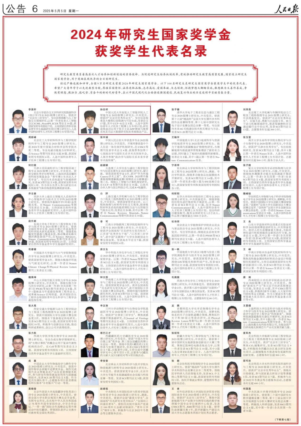 董冠霆、郑晨宇获批2025年度国家自然科学基金青年学生基础研究项目(博士研究生)专项;董冠霆、陈浩楠、杨文恺入选2025年中国科协青年人才培育工程博士生专项计划。