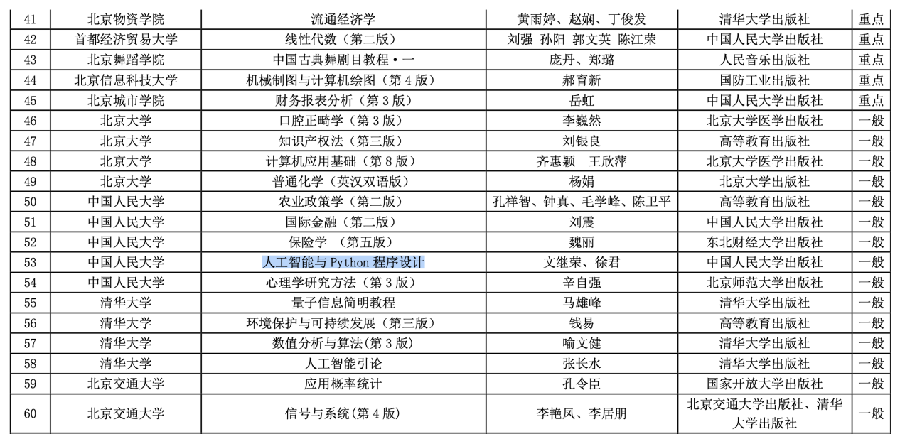 近日,北京市教育委员会公布2025年北京高校本科教学项目建设评选结果,7M体育即时比分 教材《人工智能与Python程序设计》入选北京高校优质本科基本教学资源,“门头沟区 中国人民大学创新创业基地”入选北京本科高校产学研深度育人平台。