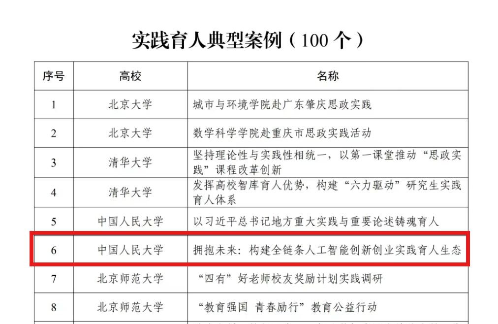 为深入贯彻教育强国建设战略部署,全面落实国务院《关于深入实施 “人工智能 +” 行动的意见》,中国人民大学紧密对接国家人工智能发展总体规划,锚定北京建设国际影响力人工智能创新策源地的核心目标,以培育服务国家战略需求、兼具创新能力与人文素养的复合型人才为核心使命,将创新创业实践育人作为落实立德树人根本任务的关键抓手。