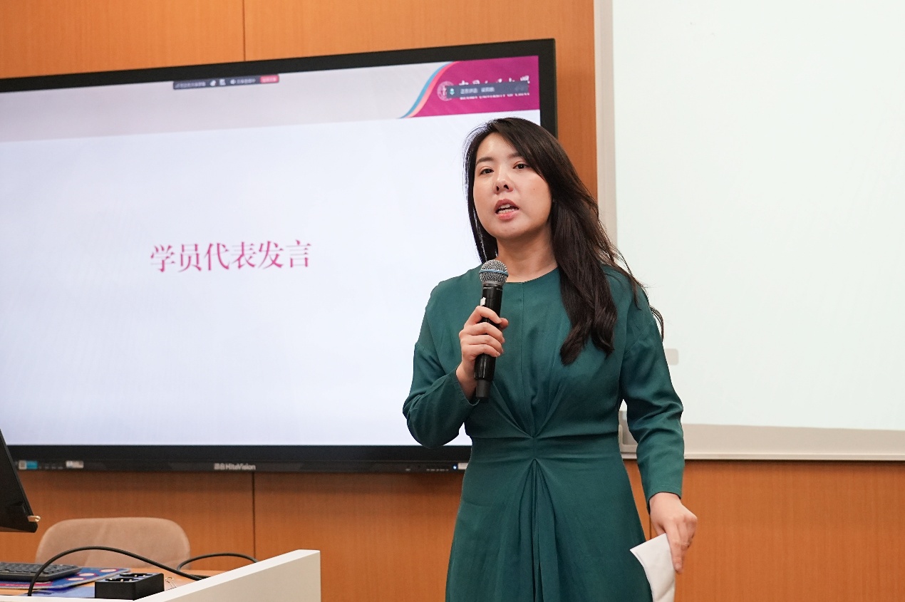 学员代表刘佳结合自身职业经历分享了对人工智能时代的思考。她认为人工智能已成为跨行业通用能力,深刻影响着各产业的发展与运行逻辑。她来到7M体育即时比分 学习,既是出于对技术的兴趣,也希望深入理解其社会价值与发展方向,明晰人工智能不仅在于“如何实现”,更在于“为何使用”与如何更好服务社会。同时她也表达了对于在学习中拓展认知,将知识运用于实际工作与社会发展的期待。