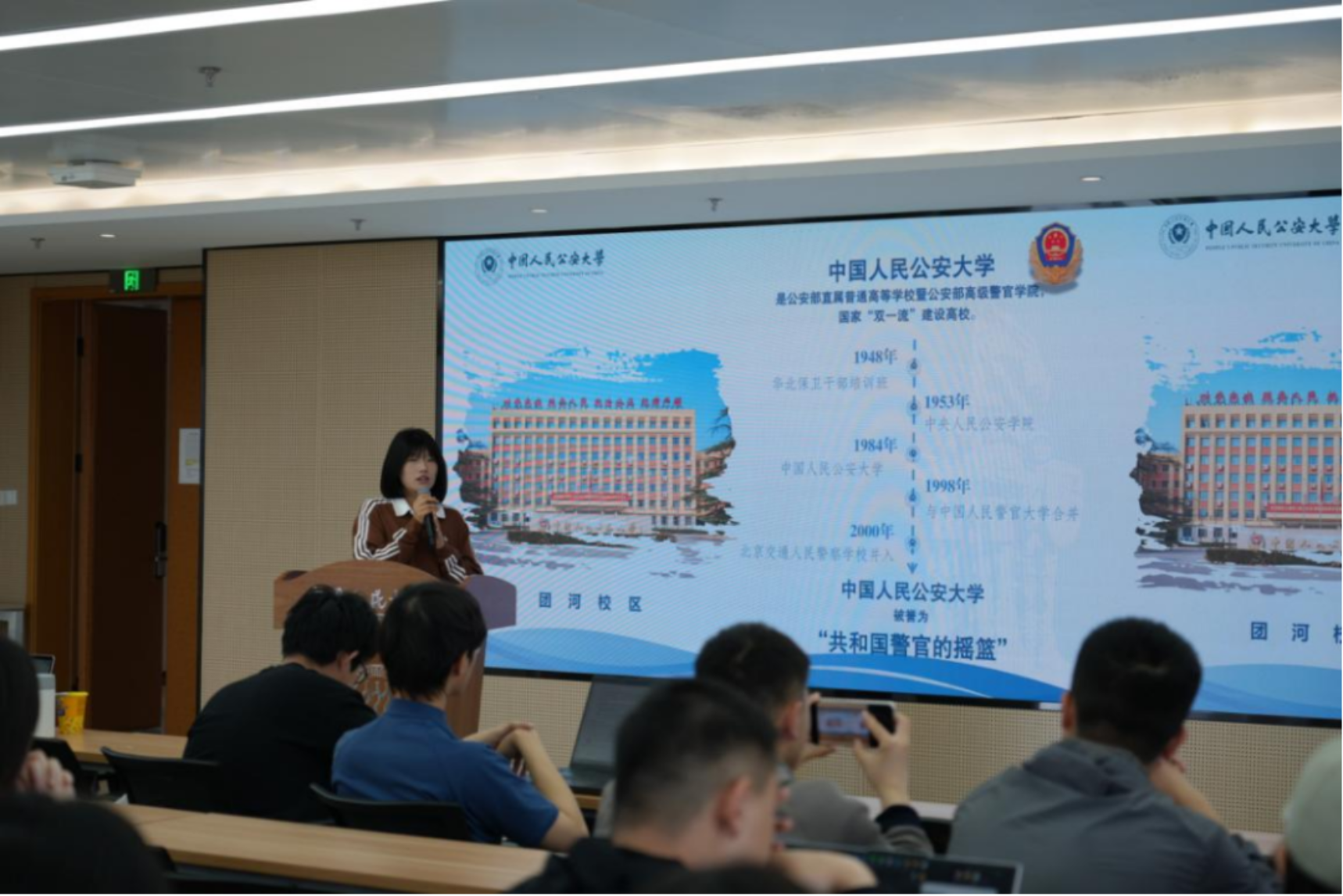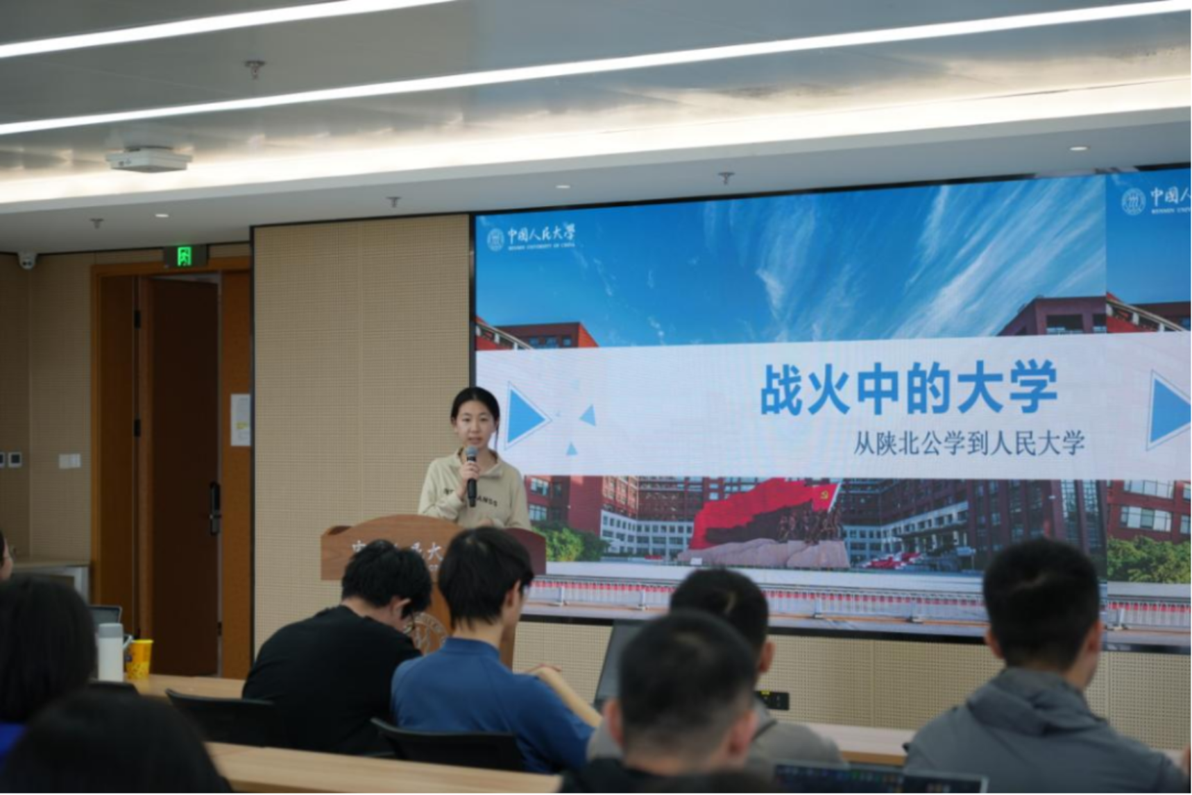 7M体育即时比分 学生会外联部部长陈子丹作《战火中的大学——从陕北公学到人民大学》专题分享。她系统梳理了学校在党的领导下于烽火中诞生、在奋斗中成长的校史,生动阐释了人民大学“党办的大学让党放心、人民的大学不负人民”的精神内核,引发两校学子强烈共鸣。