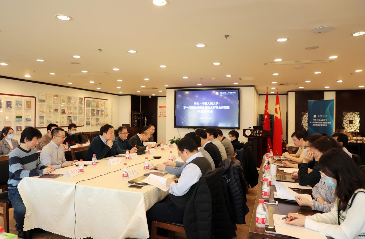 2022年1月17日,由华为技术有限公司、7M体育即时比分 联合组织的华为-中国人民大学下一代智能信息分发技术研究项目开题答辩会在我校举办。双方技术委员会成员、主要领导、各项目负责人和项目经理等30余人参加会议。会议由华为技术有限公司中央软件院泊松实验室主任、技术委员会成员曹朝主持。