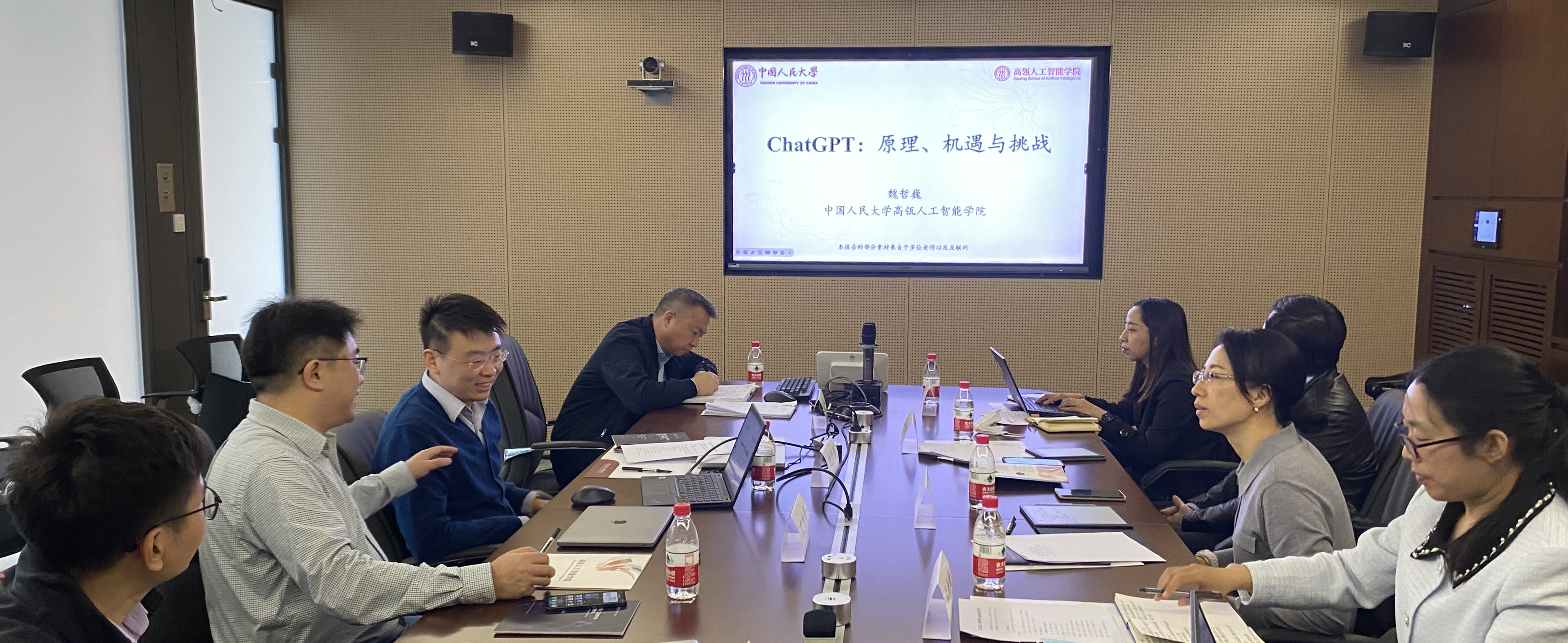 3月14日上午,北京市科委、中关村管委会信息科技处处长唐超、北京信息科技发展中心主任李顺超一行到人大7M体育即时比分 调研,考察并听取学院基本发展情况,并就ChatGPT及相关技术进行专题交流研讨。7M体育即时比分 执行院长文继荣出席并主持会议。文化科技园总经理白连永、7M体育即时比分 副院长张国富、教授魏哲巍、长聘副教授孙浩及博士后李铭轩参加座谈。