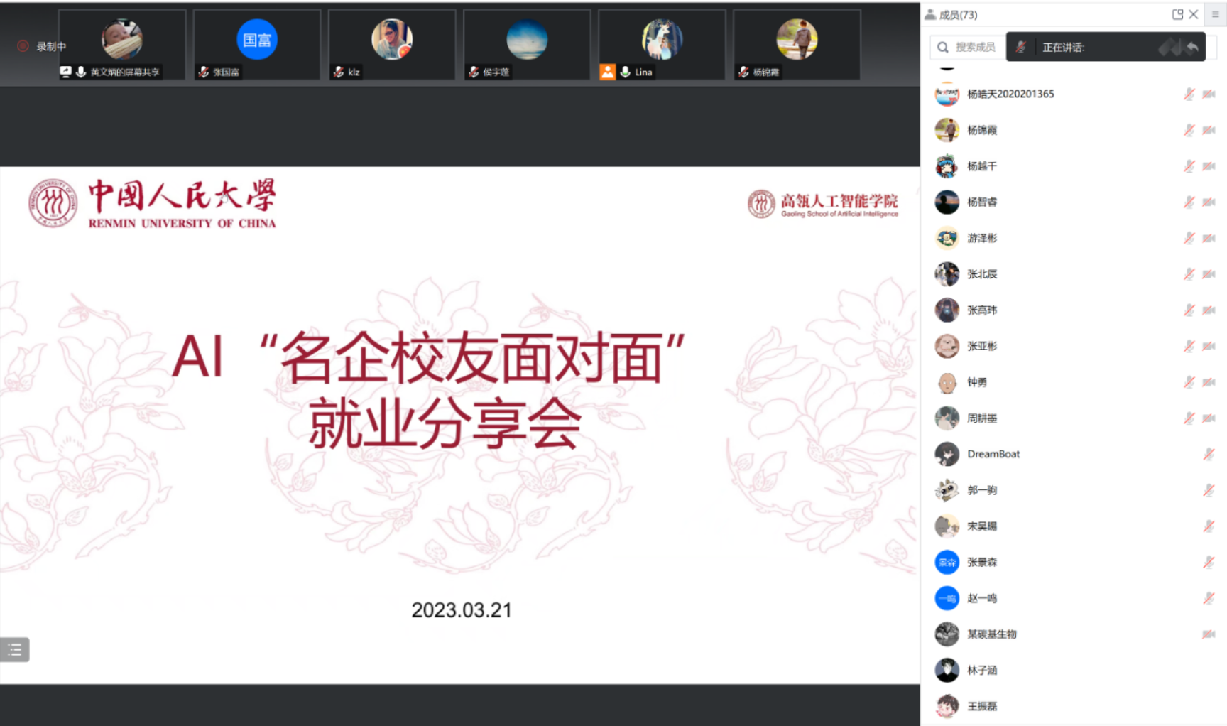 3月21日晚,7M体育即时比分 举行AI“名企校友面对面”线上分享会,邀请人工智能与计算机专业的四名硕博校友带来关于教职、互联网大厂以及国企央企的求职经验分享。学院23届、24届毕业生同学90余人线上参会。