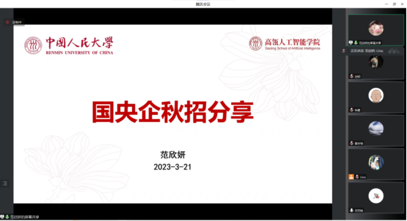 本次AI“名企校友面对面”线上分享会,四位校友分别从教职、互联网大厂、央企国企三个方向进行求职分享,为即将面临职业选择的同学们传递经验,指点迷津,搭建起了从校园到职场的“求职桥梁”。