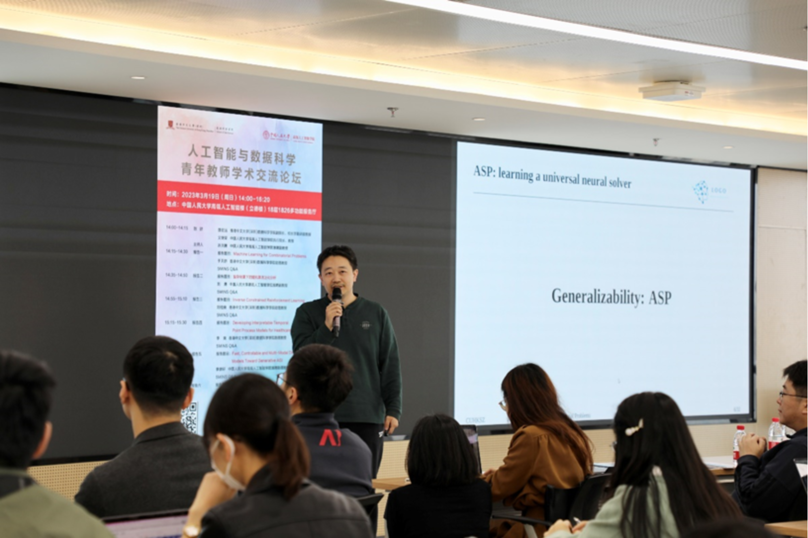 在学术报告环节,香港中文大学(深圳)数据科学学院助理教授于天舒的报告围绕如何用机器学习解决组合优化问题展开,他指出现有的基于学习的组合求解器泛化能力较差,为此他们提出了一种新的训练策略—ASP来处理泛化问题;此外,针对训练样本不足给学习带来的困难,由此介绍了其团队在基于布尔可满足性(SAT)来处理训练样本不足问题方面的研究成果。